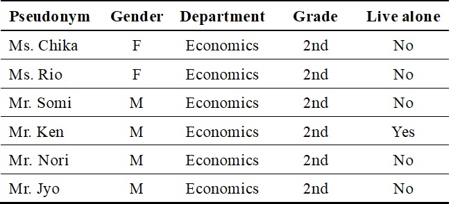 Six undergraduate students (male n = 4; female n = 2) were recruited by purposeful sampling (Patton, 2014) from one university located in Chugoku region in Japan. All participants attended the eHealth literacy workshop, which the researchers collaboratively organized, and held as a compulsory second-year course known as the Basic Seminar, which all sophomores are required to complete. Although each instructor typically delivers predetermined instructional content within their respective seminar groups, this particular class session allowed instructors to design their own activities. Taking advantage of this flexibility, the three researchers collaboratively planned and delivered the eHealth literacy workshop. A total of 30 undergraduate students enrolled in the seminar groups supervised by the three researchers participated in the workshop. Prior to implementing the workshop, the researchers established sampling criteria that required students to (a) respond to the questionnaire survey before the workshop, (b) have prior experience searching for health information online, and (c) admit that they faced difficulties in using online health information. Criteria (b) and (c) were established based on transformative learning theory, which suggests that meaningful learning occurs when students recognize limitations in their current ways of thinking and engage in critical reflection to develop new perspectives (Tomura et al., 2024). Among the 30 students, 21 met criteria (a) and (b). However, only six of these students provided consent to participate in the semi-structured interviews. After confirming that these six students also met criterion (c), they were selected as the research participants for the current study. All participants (Ms. Chika, Ms. Rio, Mr. Somi, Mr. Ken, Mr. Nori, Mr. Jyo) met these sampling criteria and were assigned pseudonyms to protect their privacy and ensure anonymity.
